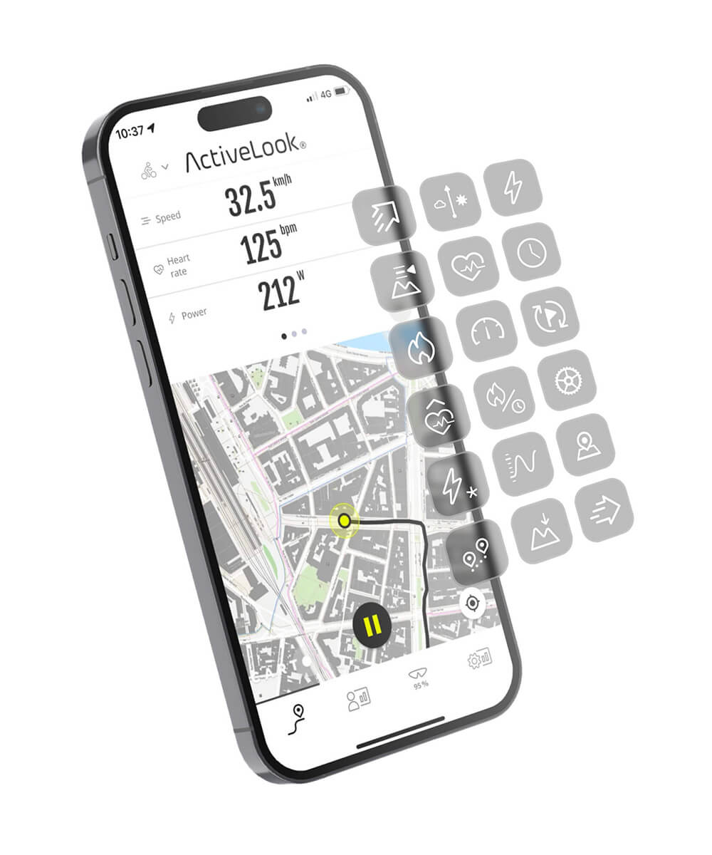 Scaricare l'applicazione ActiveLook e associare ENGO tramite Bluetooth. Regolare la cornice per posizionare il display perfettamente nella linea visiva. Apple Watch: L'applicazione companion si installa automaticamente: basta avviarla ed eseguirla. Garmin: scaricare il campo dati ActiveLook da Connect IQ e aggiungerlo alla schermata delle attività. Siete pronti ad allenarvi.