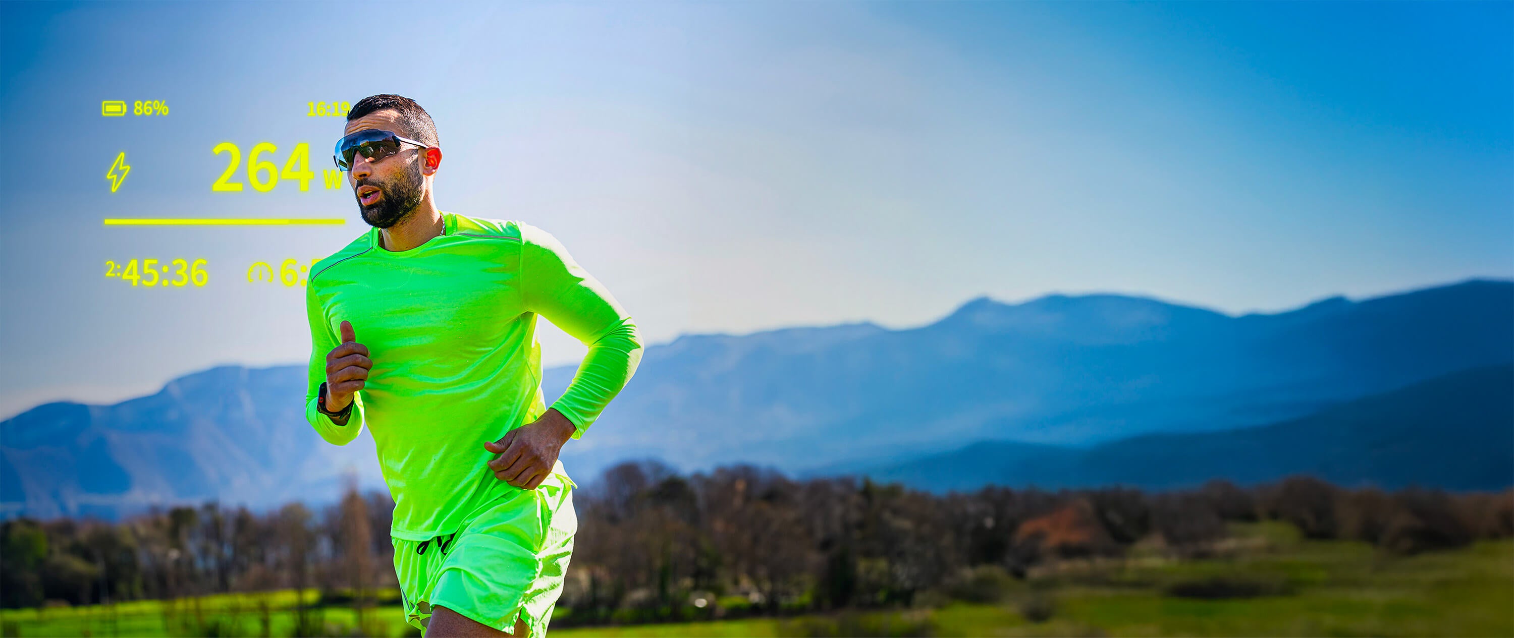 Gli occhiali intelligenti più leggeri al mondo. Aggiungete le lenti fotocromatiche per allenarvi in ogni condizione, dall'alba al tramonto, senza dover cambiare gli occhiali.